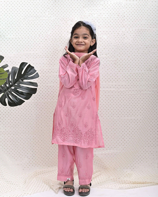 Elegant Floral Hand Embroidered Chikankari Suit Set