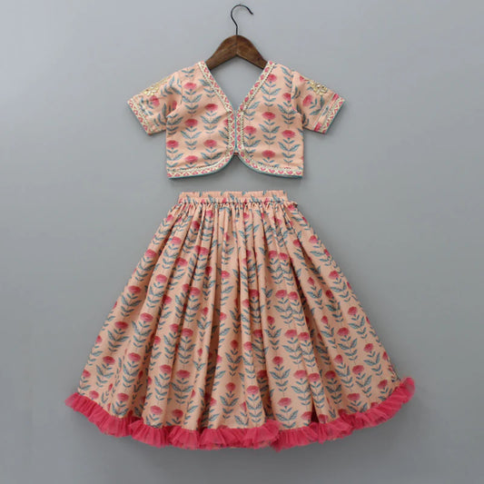 FLORAL PRINTED CROP TOP WITH LEHENGA AND NET DUPATTA