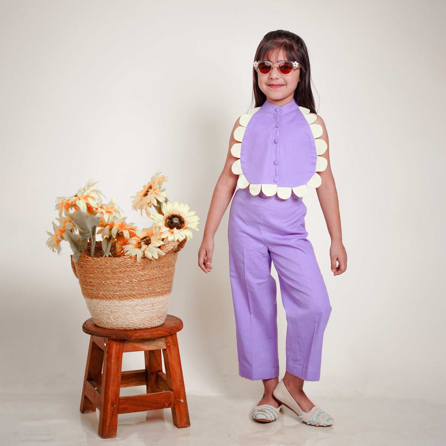 features playful dinosour scallops in lime yellow color perfect for everyday adventures fabricated buttons pants: front belt, back elastic extra 1"margins