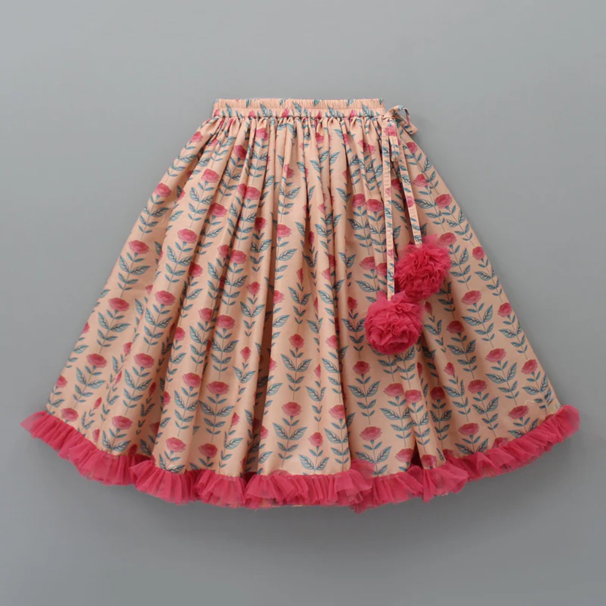 FLORAL PRINTED CROP TOP WITH LEHENGA AND NET DUPATTA