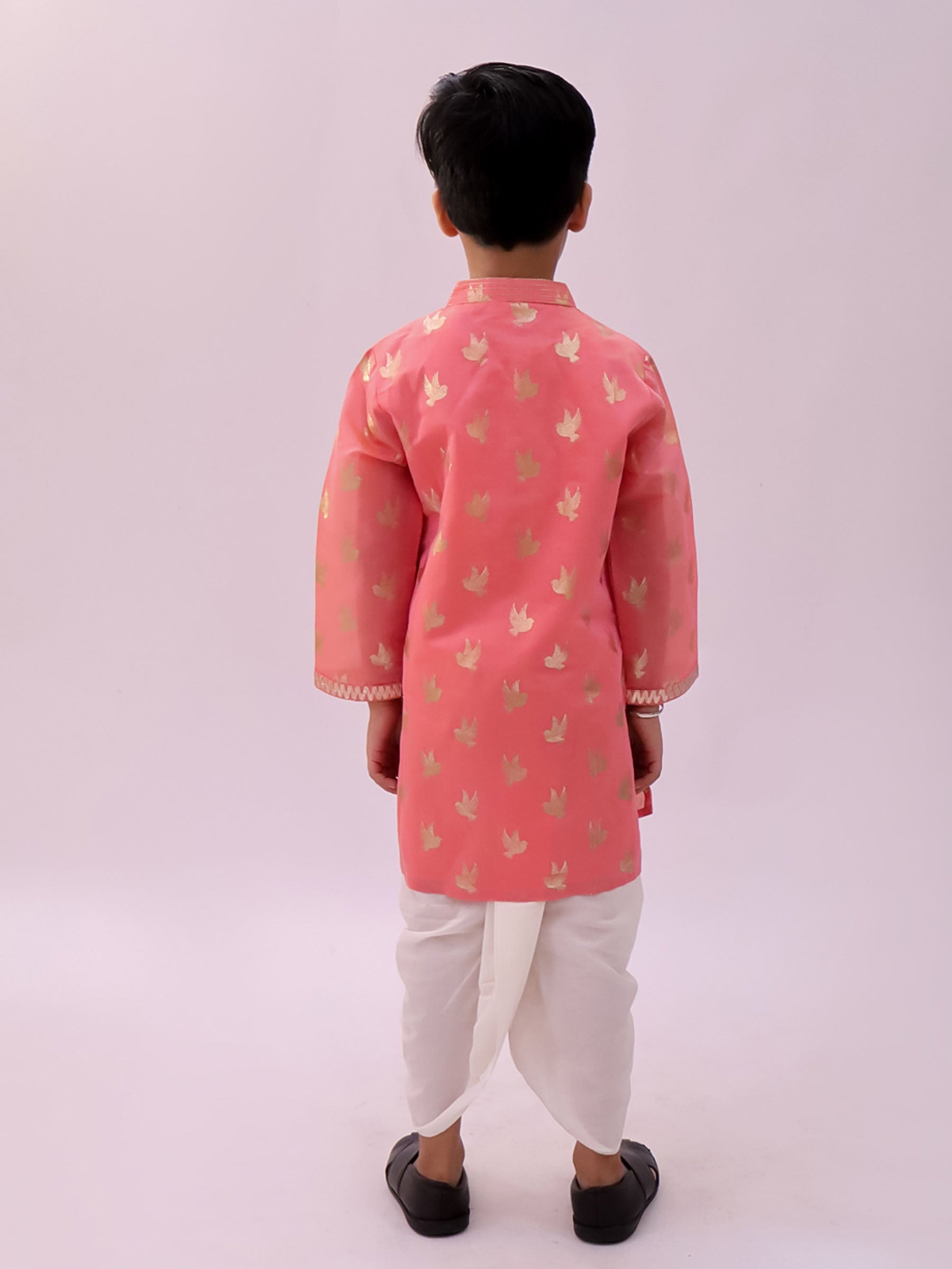 lil drama chanderi full sleeves foil bird print kurta and dhoti set - peach