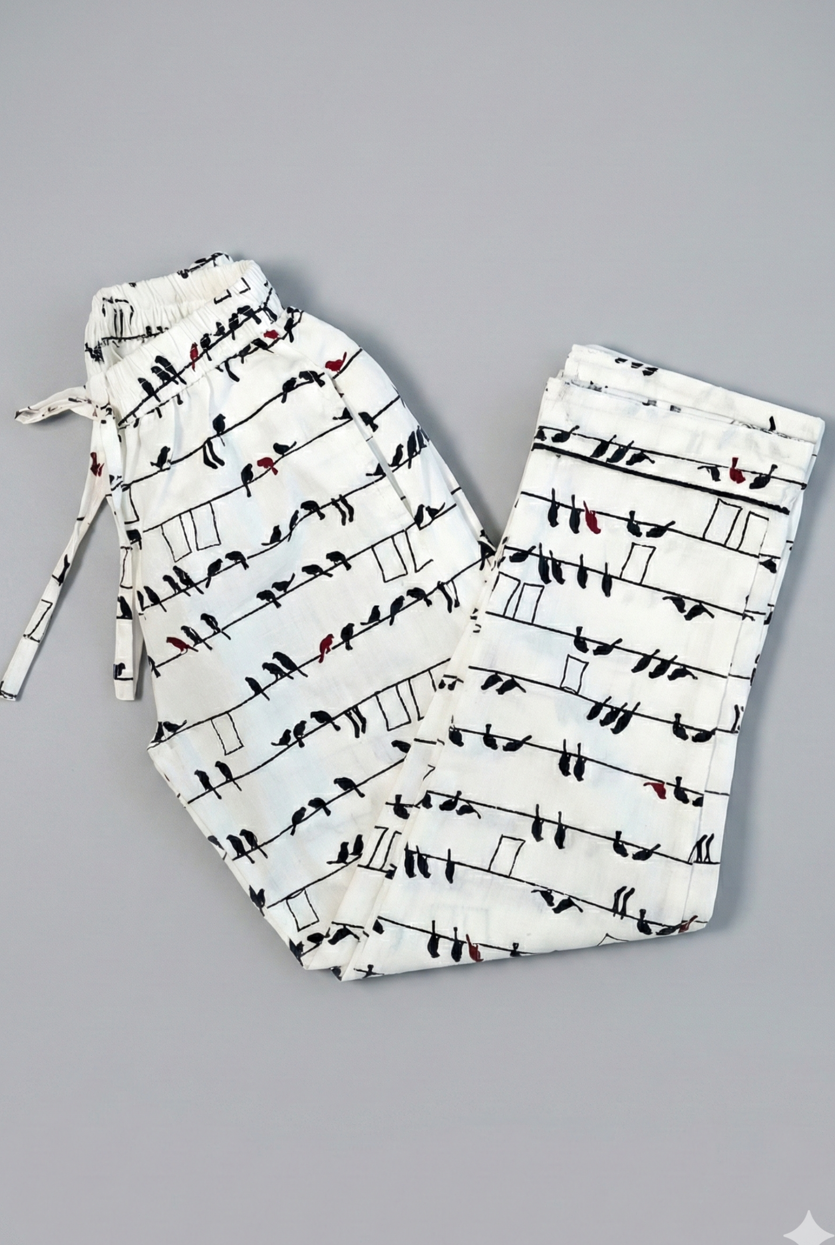 minimal birds resting on delicate lines bring a quiet, storybook charm to this elegant night print. light, breathable, and thoughtfully designed, this nightsuit comes with a matching bag to keep bedtime essentials together.