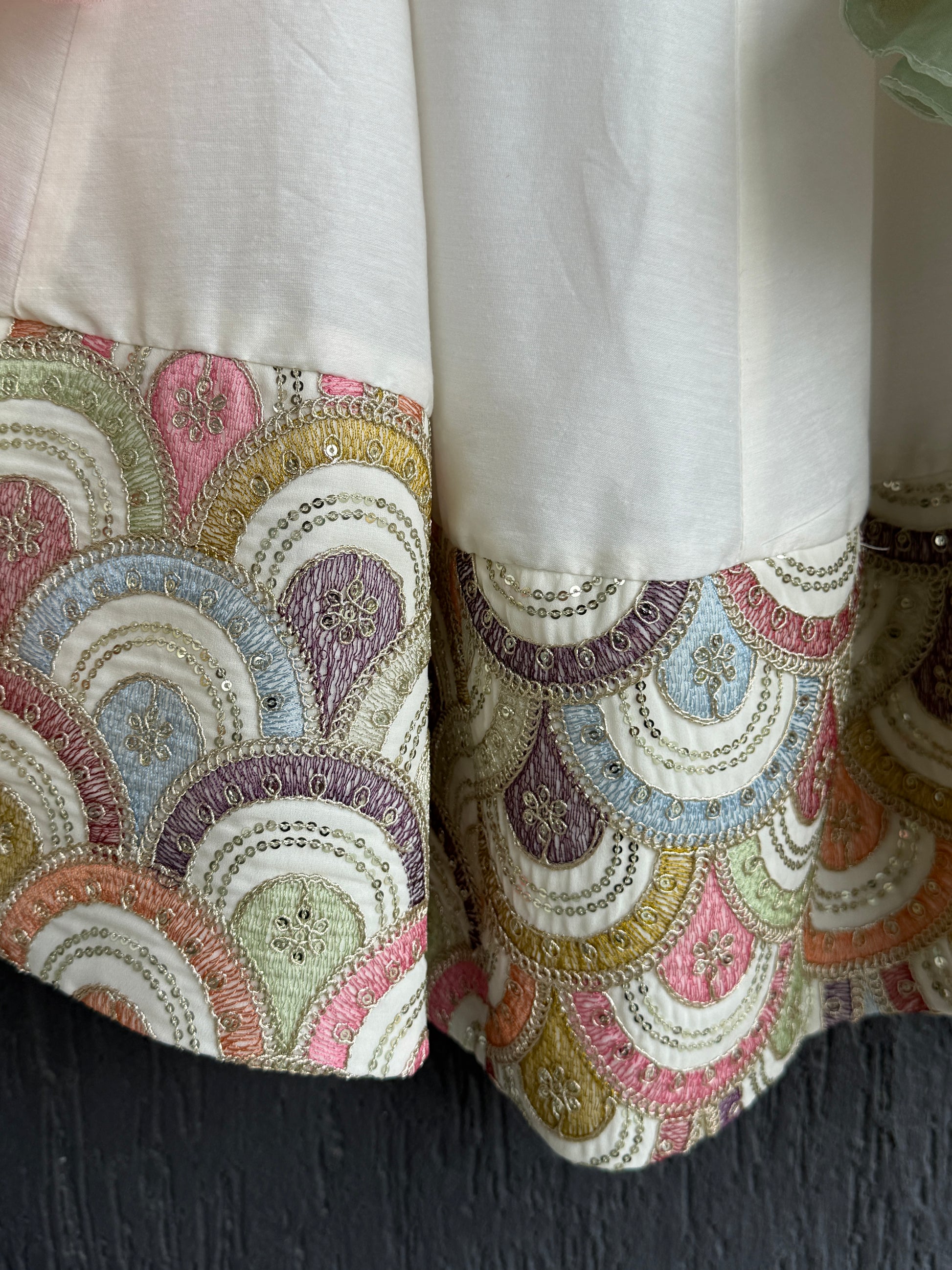 OFF WHITE SCALLOP EMB BLOUSE LEHNGA SET