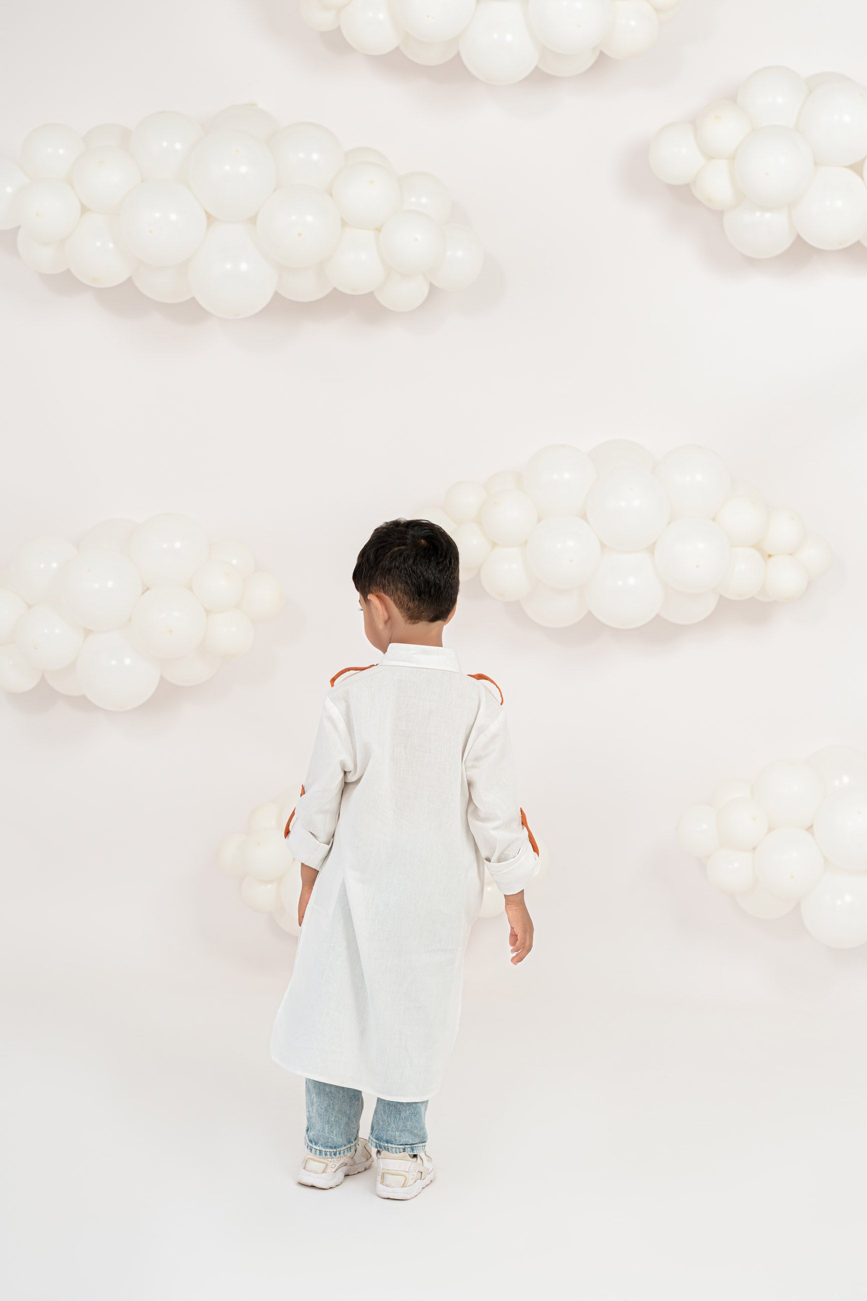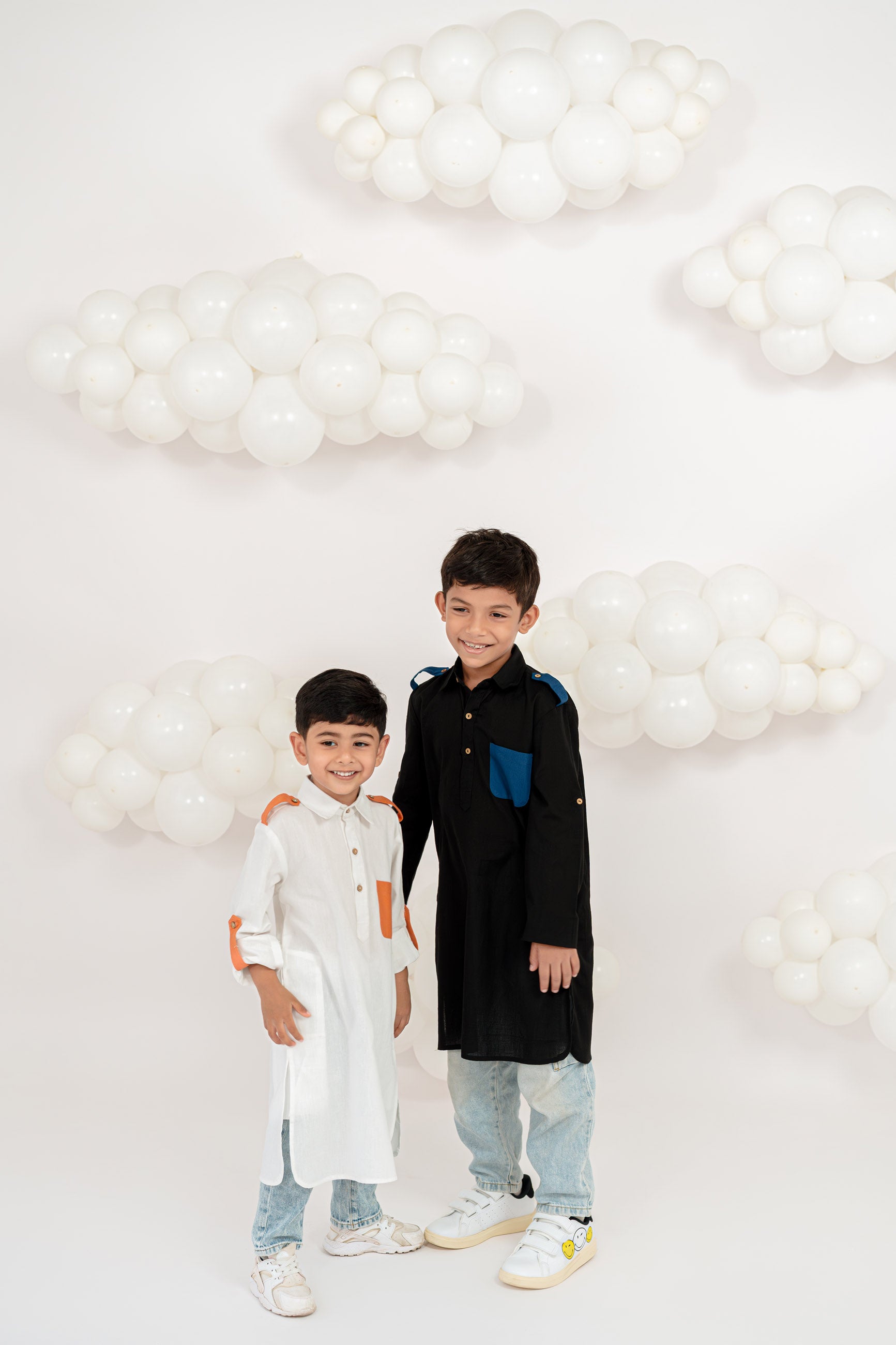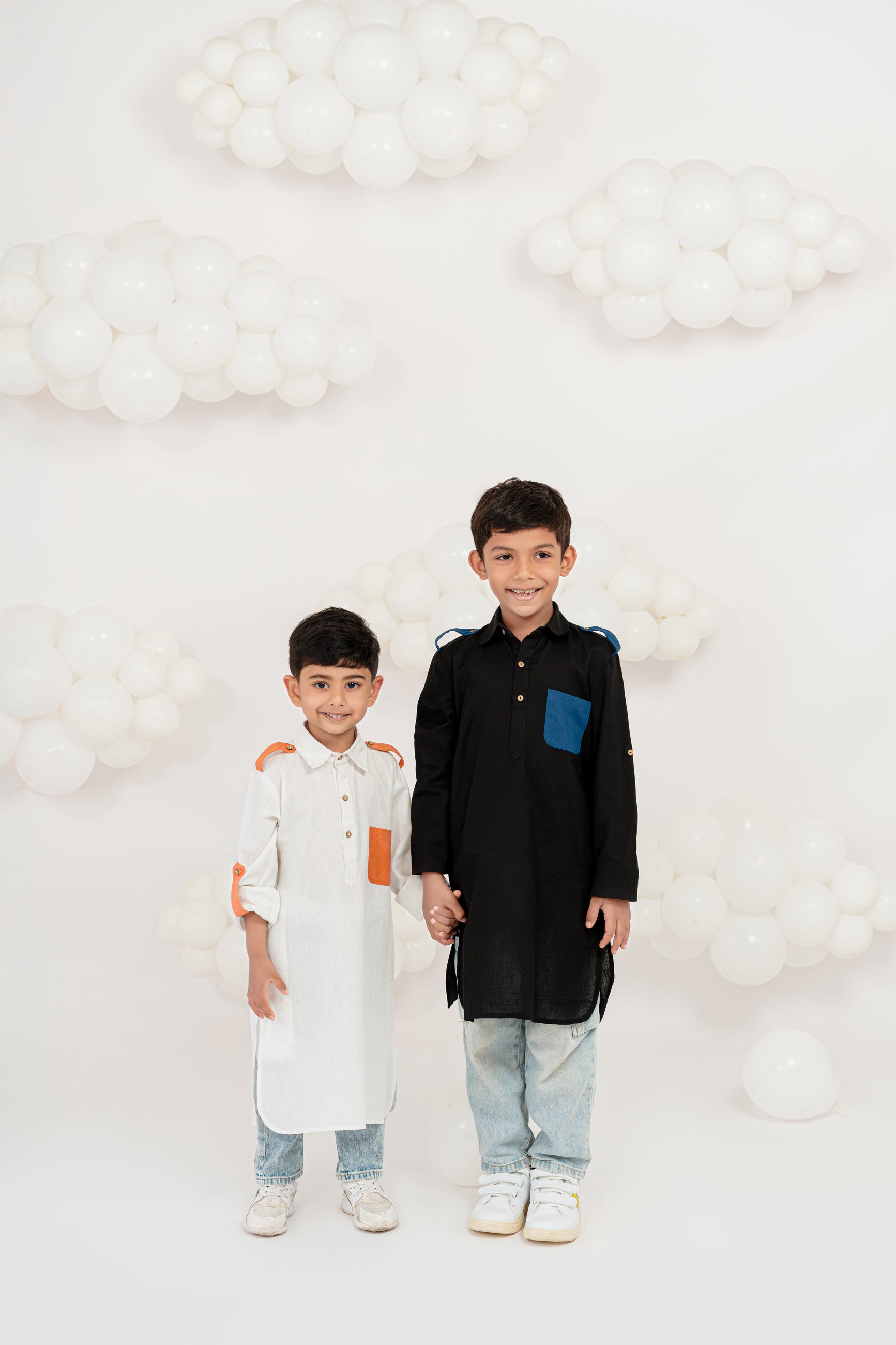 bright whites meet bursts of tangerine! this easy-breezy pathani brings playful vibes with its bold pocket and sleeve tabs. soft, comfy, and full of fun — perfect for festive days or everyday flair.