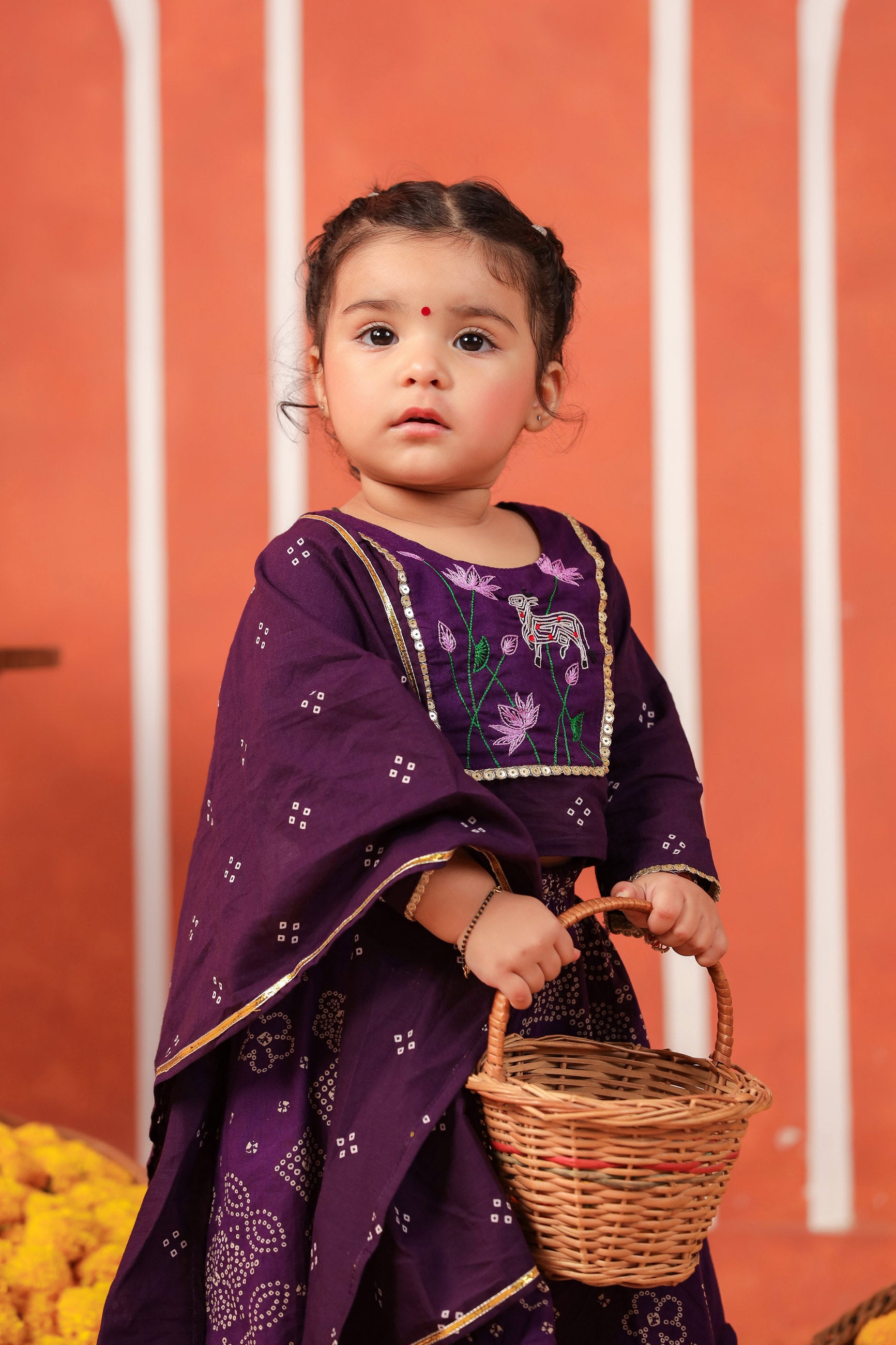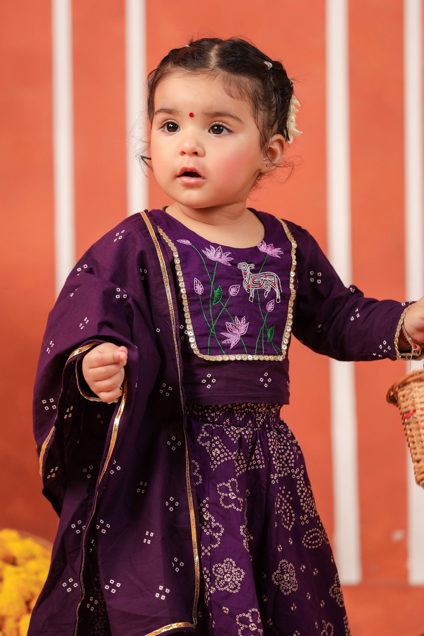 every princess deserves a royal and magical clothing in her collection . this three piece set is apt for all festivities and events . there is a hand embroidery work which adds more to exclusive look.