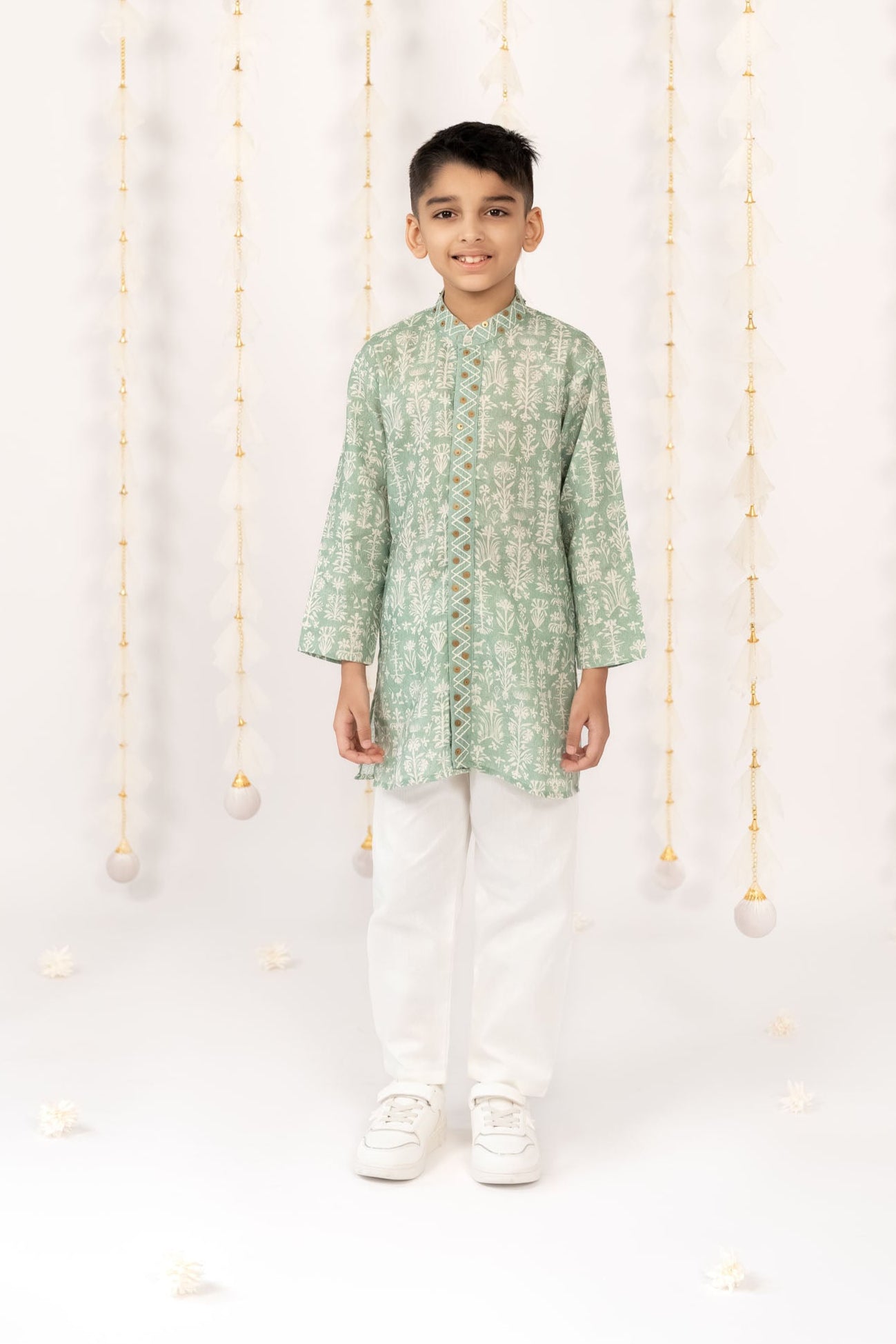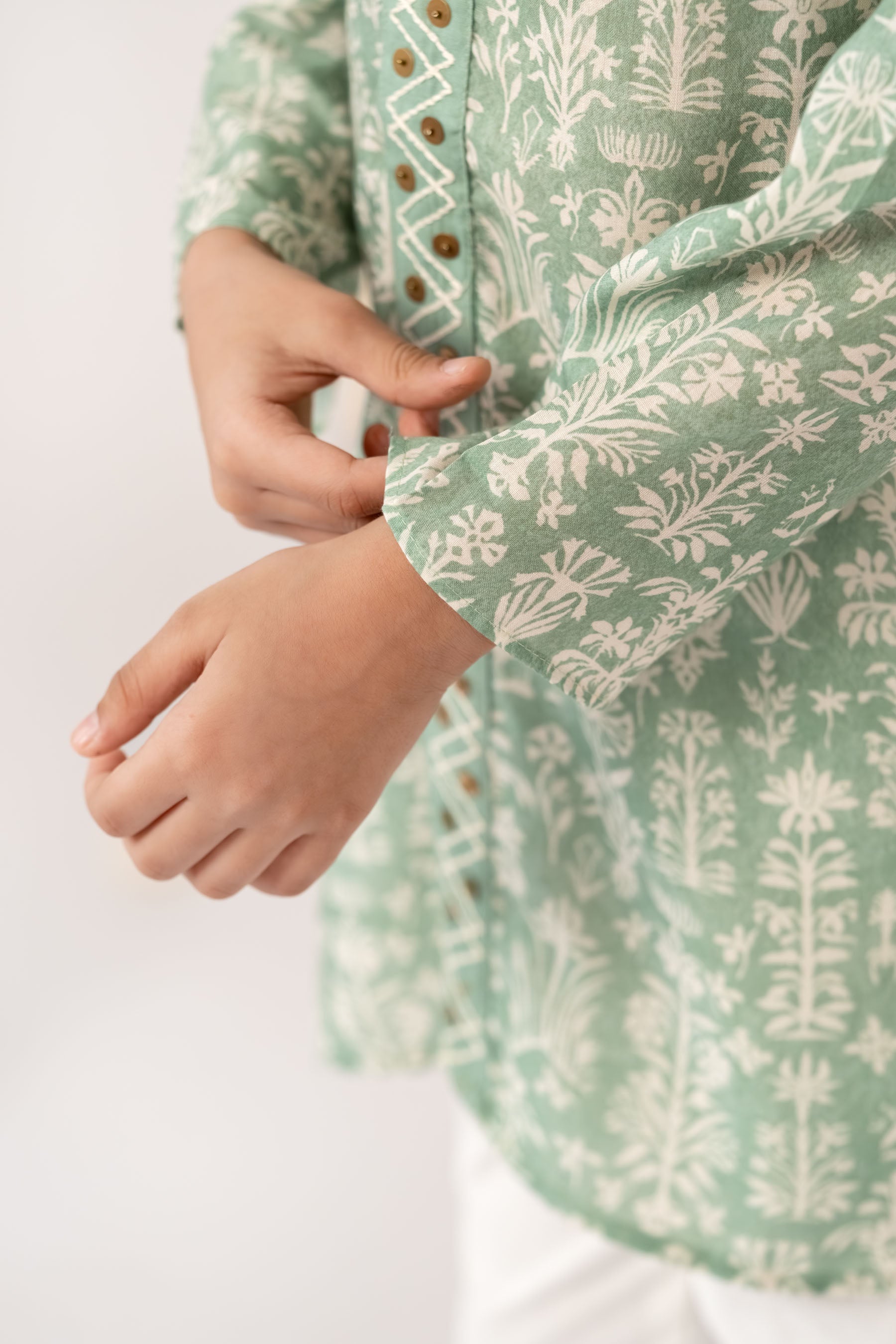 soft, serene, and subtly festive — the sparkled sage kurta with pants is designed to bring elegance to everyday dressing. tailored in a refreshing sage green hue, this kurta features delicate floral prints and is gently adorned with fine golden sequin detailing along the front, adding just the right hint of sparkle.