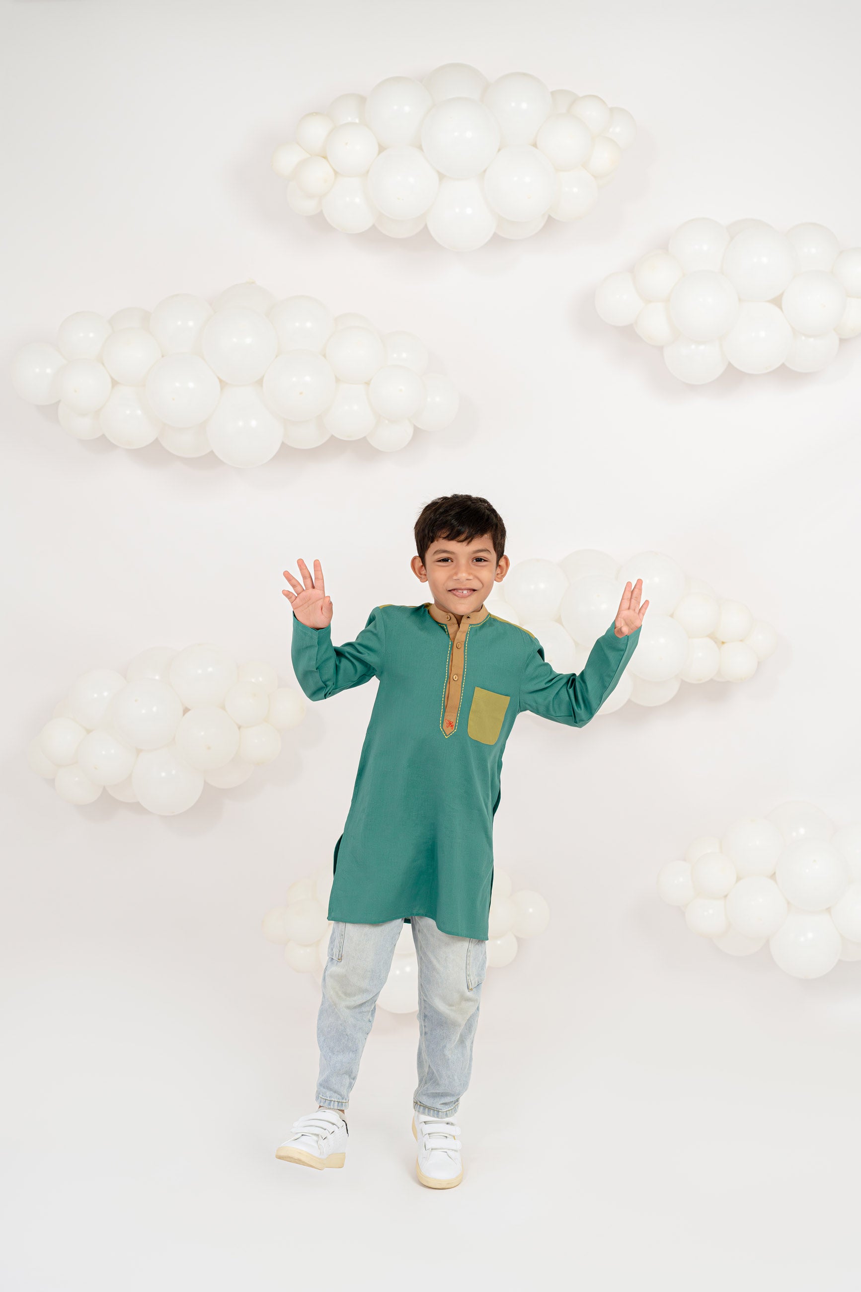 et your little one on a playful journey with our tiny trail kurta. crafted in soft, breathable cotton, this charming kurta features a refreshing dual-tone design with a soothing teal blue on the collar and pocket. the tiny airplane embroidery on the pocket adds a fun, adventurous touch — perfect for your young explorer. designed for comfort and style, it's ideal for festive occasions, family gatherings, or casual outings.