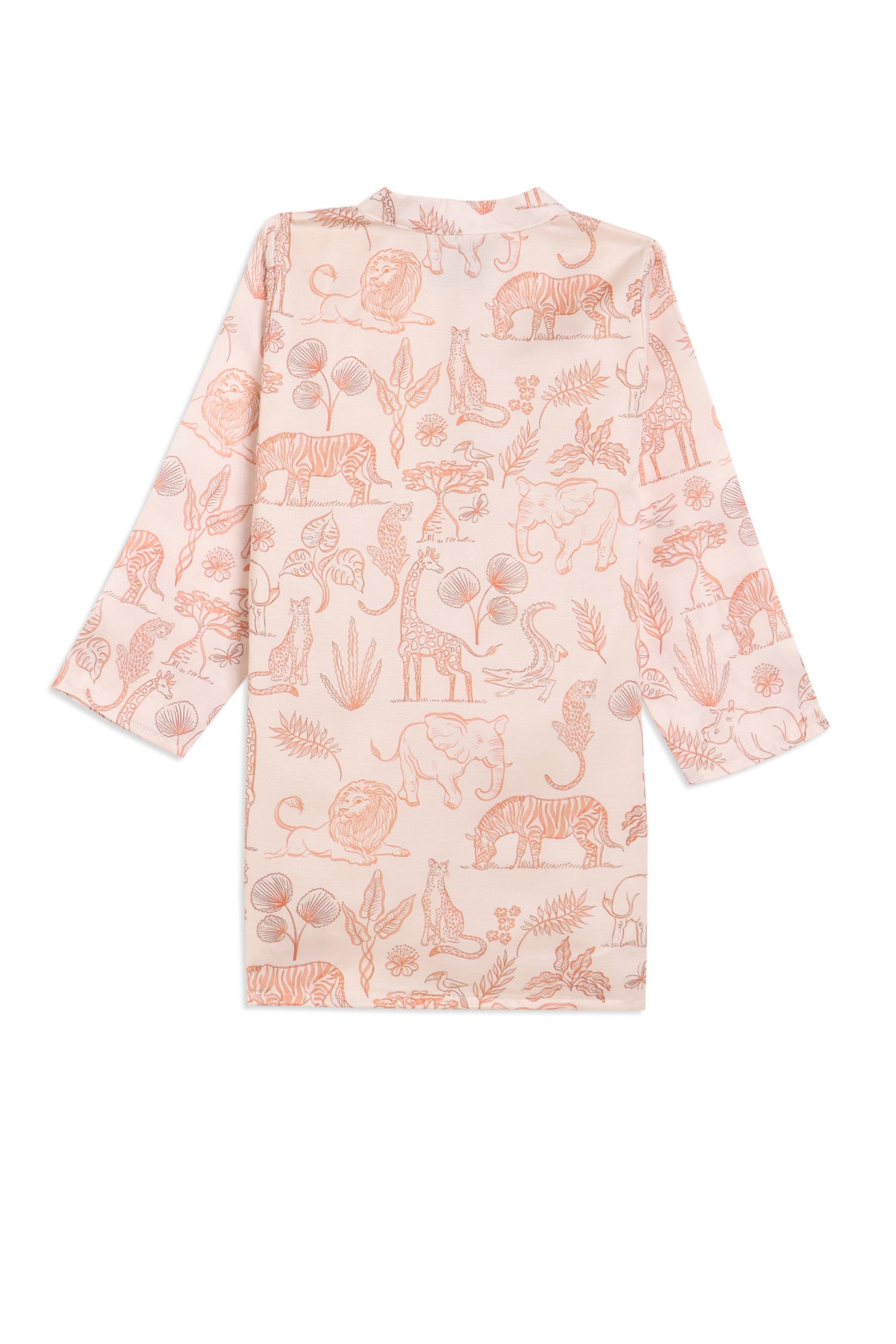 featuring a wild charm printed ivory kurta with buttons in the front. it is a lined kurta with full sleeves. it comes along with white straight cotton pants.